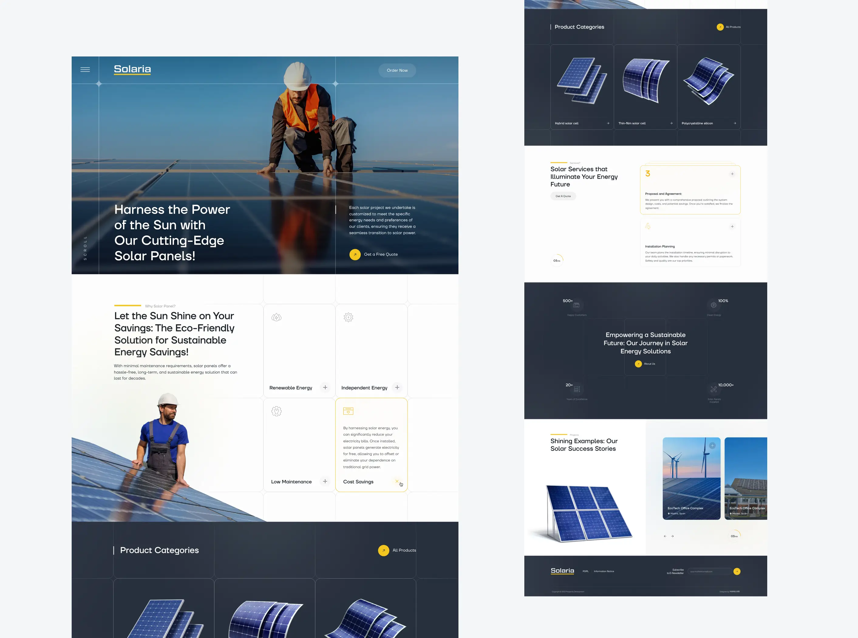 Solaria uchun barqaror energiya mavzusiga mos, zamonaviy va ishonch uyg‘otuvchi raqamli ko‘rinish yaratdik. Loyiha doirasida veb dizayn va veb dasturlash ishlarini bajarib, quyosh energiyasi yechimlarini aniq, tushunarli va professional tarzda taqdim etadigan veb-sayt ishlab chiqdik. Natijada Solaria o‘z xizmatlarini raqamli maydonda kuchli, ishonchli va sotuvga yo‘naltirilgan tarzda namoyon qila oladigan platformaga ega bo‘ldi.